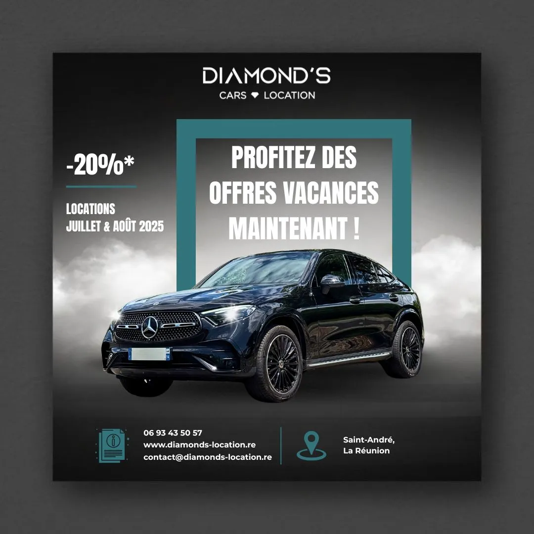 Bénéficiez de -20% sur toutes nos locations de véhicules de luxe à La Réunion pour les réservations en juillet & août 2025.